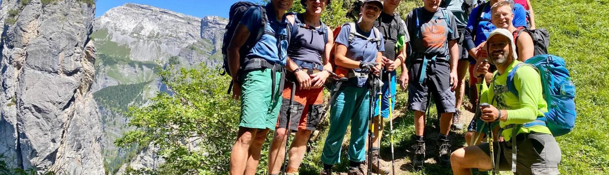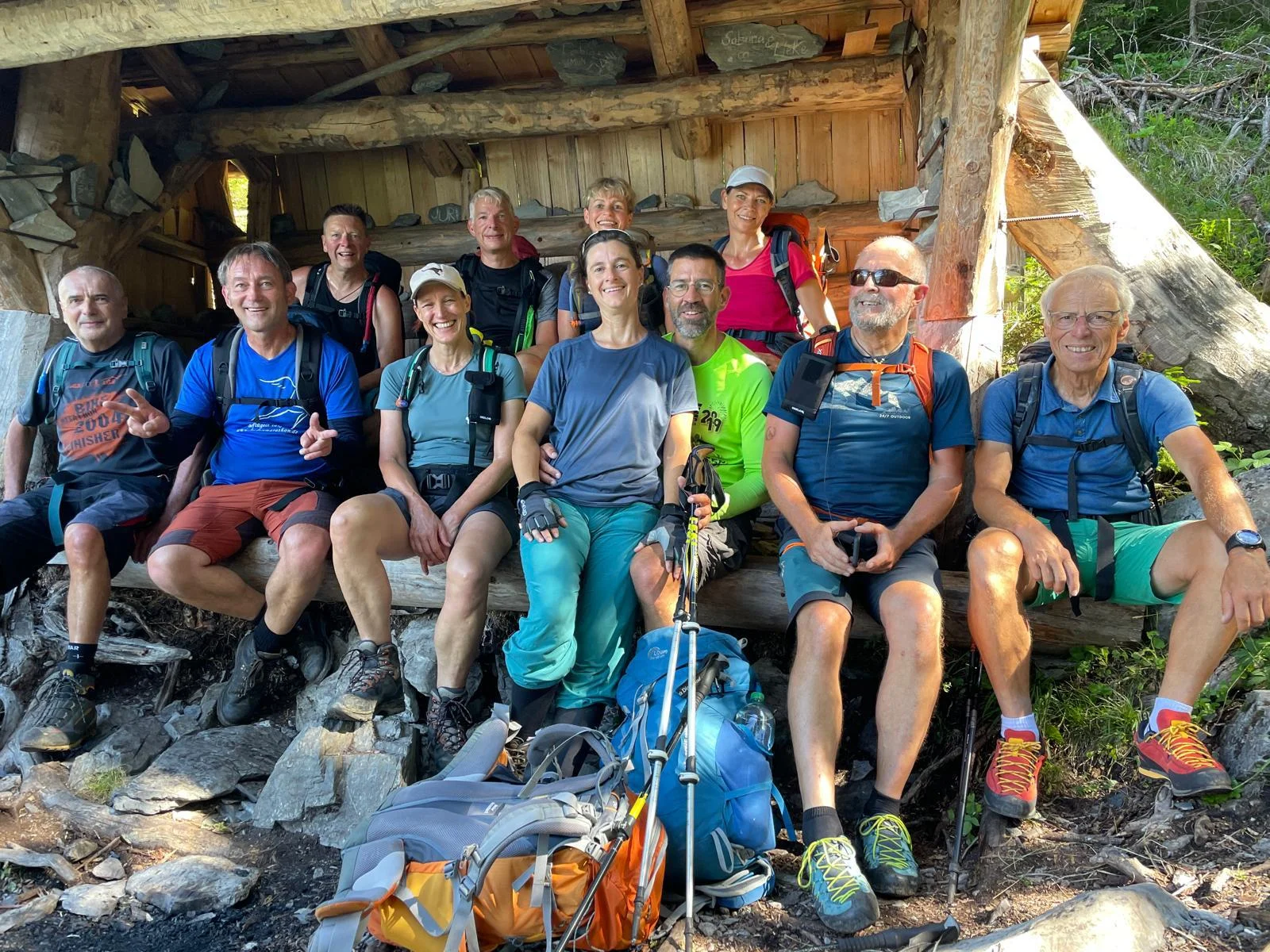 Am Ende wartet der Blick auf imposante Felsnadeln. Über blühende Bergwiesen führt uns der Weg zur Seewli-Alp, die zu kurzer Rast einlädt. 1:30 Stunden später stehen wir an einem Wegweiser, der den Gipfel des Hoch Fulen (2506 m) markiert. Nach weiteren 1:30 Stunden erreichen wir unterhalb steiler Felswände unser Nachtquartier.